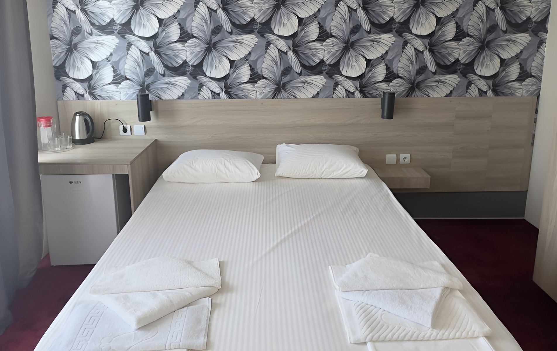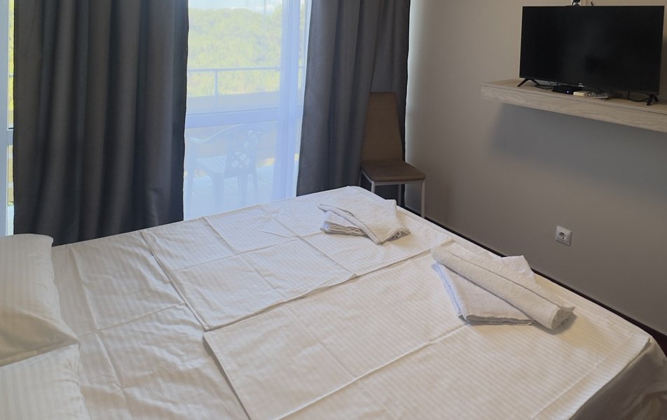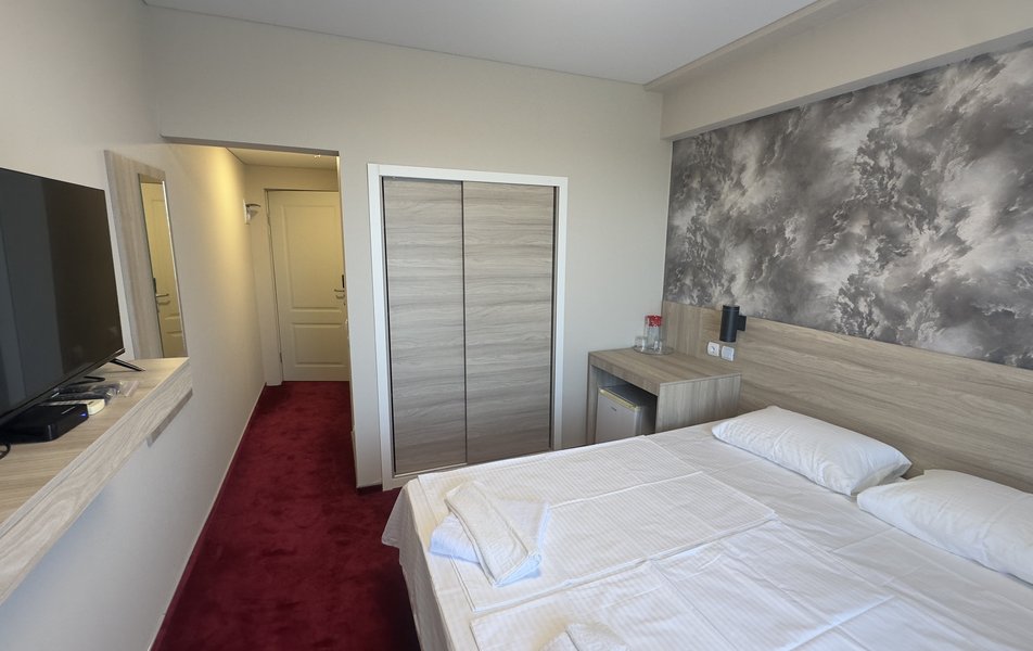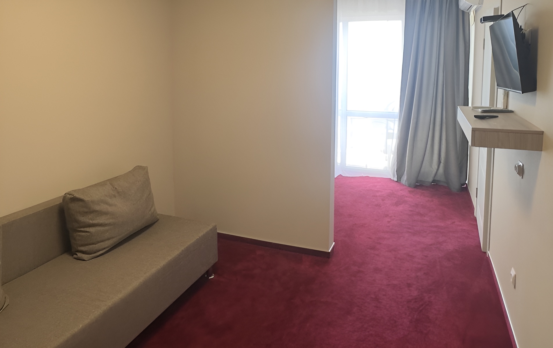 Отдыхали 15 дней в июле 2025 с внучкой впервые, номер стандарт с ремонтом и балконом. Рассчитывала на бюджетный отдых, истратила 227 тыс. руб, никаких покупок, даже специи себе не купила, цены задрали до небес (за кг: дыня 130, арбуз 100, виноград 400, персик 400, мороженое 150-180).. Убогая инфраструктура: шатающиеся плитки, некрашеные и сломанные скамьи, нет цветов, грязный пляж, застревающий лифт, застиранные белье и полотенца, смена через 7 дней, уборка условная: только вынос мусора и протирают проход от двери до балкона. Холодильник маленький и морозит как морозилка. Чайника в номере нет, кулеров в коридоре нет. Доступ на территорию свободный, поэтому "дикари" занимают лежаки, их не хватает. Питание очень однообразное и невкусное, быстро работают в зале, посуда чистая. В ресторане с живой музыкой 10% чаевых в чеке, средний 2500 без алкоголя. Экскурсии брали у частника, малой группой, кроме оплаты за экскурсию платить везде за вход. Море чистое, но вход с тростью трудный, все развлечения на пляже и Аквапарк за отдельную плату. Сосны красавицы, есть мозаика и скульптуры - работы Церетелли. Все доброжелательные, но не услужливые. Трансфер групповой туда более 1,5 часов плутали по Гагры, искали отель; назад все из Пицунды, собрали за 20 минут, но больше 2 часов стояли в пробке и на КПП.. Общий вывод: такой "бюджетный отдых" не стоит таких затрат.. . ,