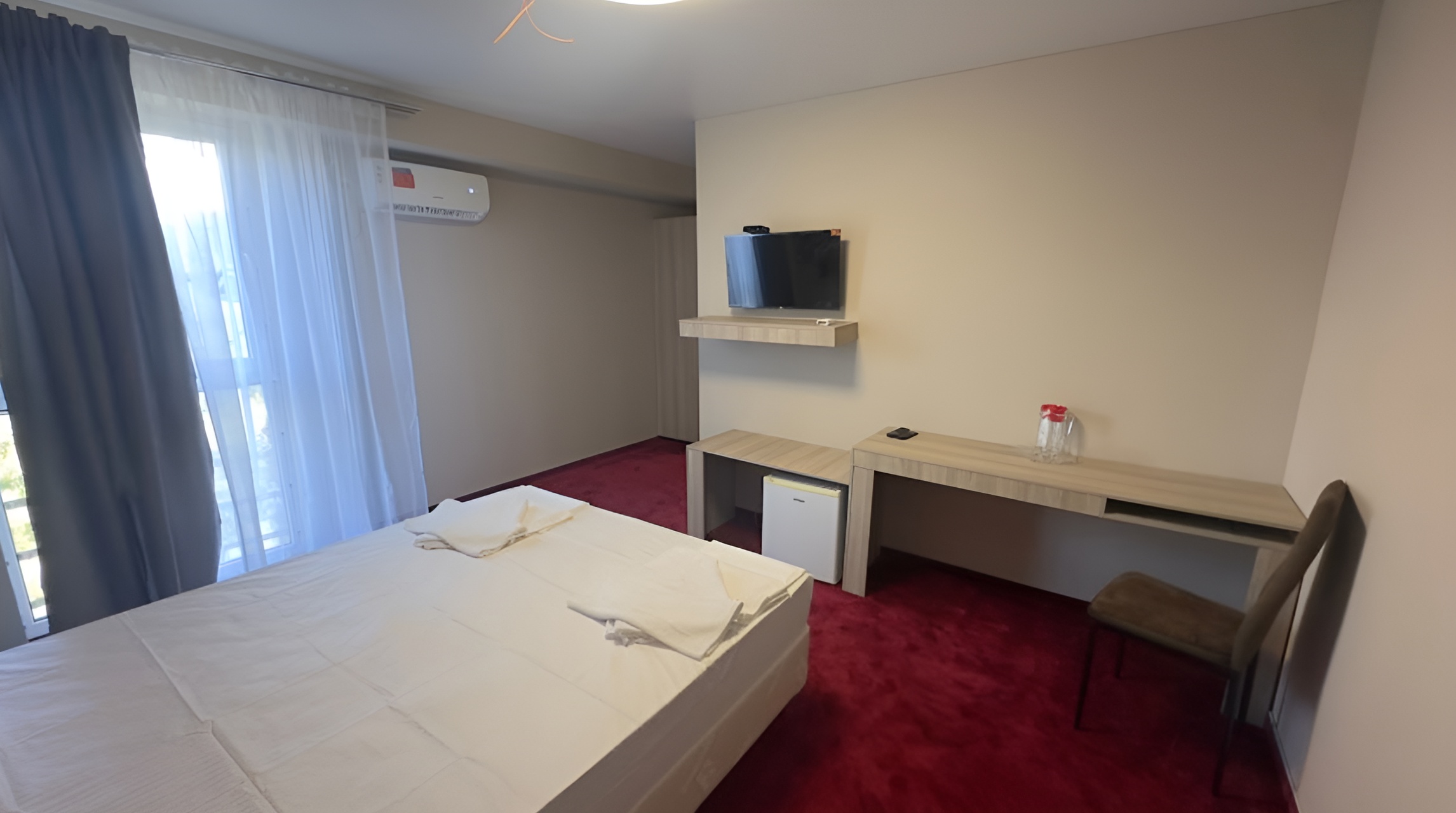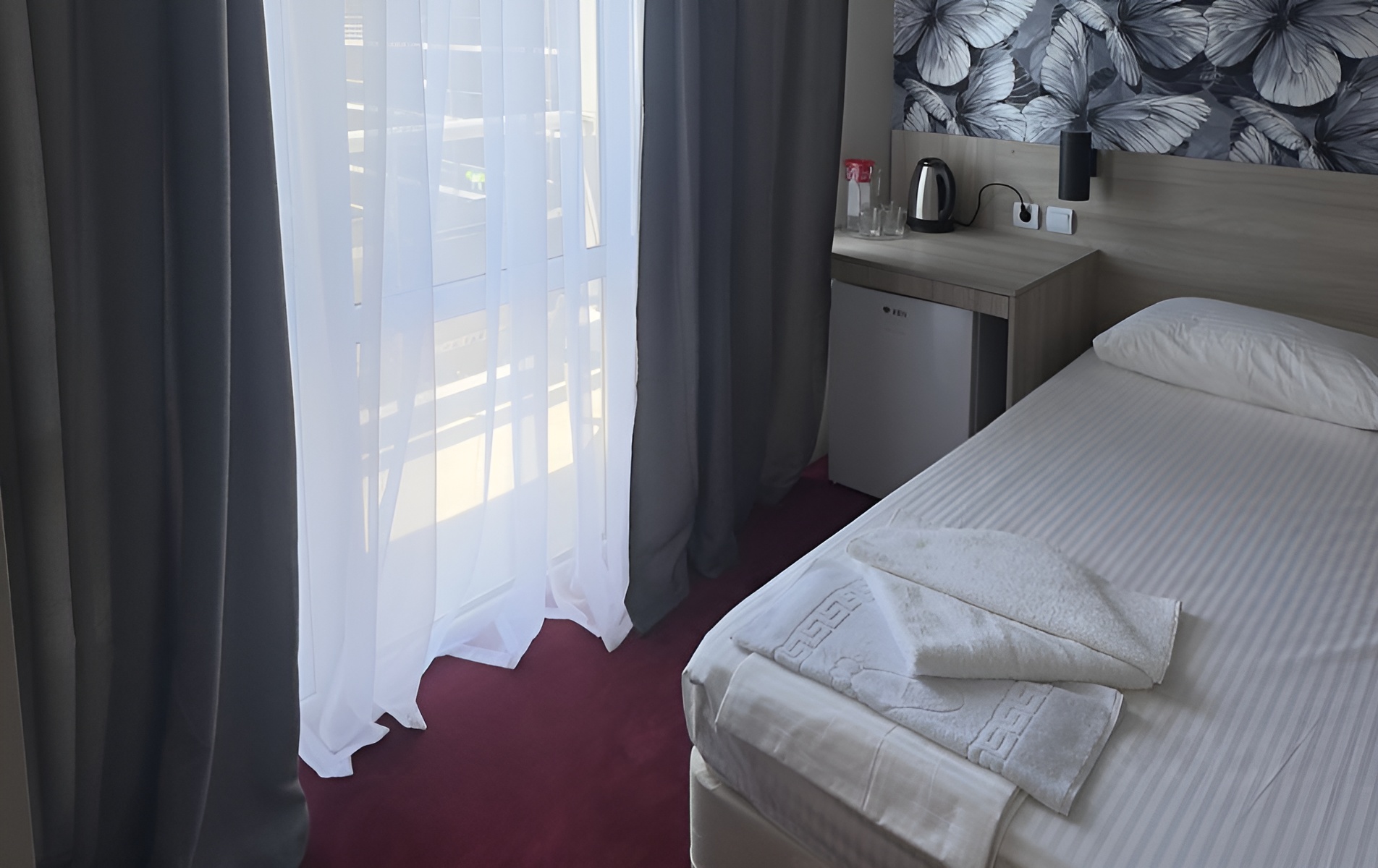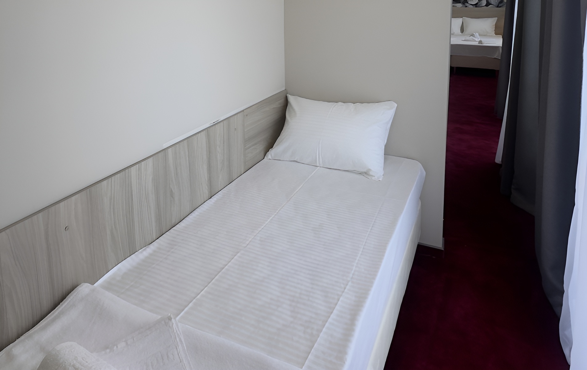 Отдыхали 15 дней в июле 2025 с внучкой впервые, номер стандарт с ремонтом и балконом. Рассчитывала на бюджетный отдых, истратила 227 тыс. руб, никаких покупок, даже специи себе не купила, цены задрали до небес (за кг: дыня 130, арбуз 100, виноград 400, персик 400, мороженое 150-180).. Убогая инфраструктура: шатающиеся плитки, некрашеные и сломанные скамьи, нет цветов, грязный пляж, застревающий лифт, застиранные белье и полотенца, смена через 7 дней, уборка условная: только вынос мусора и протирают проход от двери до балкона. Холодильник маленький и морозит как морозилка. Чайника в номере нет, кулеров в коридоре нет. Доступ на территорию свободный, поэтому "дикари" занимают лежаки, их не хватает. Питание очень однообразное и невкусное, быстро работают в зале, посуда чистая. В ресторане с живой музыкой 10% чаевых в чеке, средний 2500 без алкоголя. Экскурсии брали у частника, малой группой, кроме оплаты за экскурсию платить везде за вход. Море чистое, но вход с тростью трудный, все развлечения на пляже и Аквапарк за отдельную плату. Сосны красавицы, есть мозаика и скульптуры - работы Церетелли. Все доброжелательные, но не услужливые. Трансфер групповой туда более 1,5 часов плутали по Гагры, искали отель; назад все из Пицунды, собрали за 20 минут, но больше 2 часов стояли в пробке и на КПП.. Общий вывод: такой "бюджетный отдых" не стоит таких затрат.. . ,