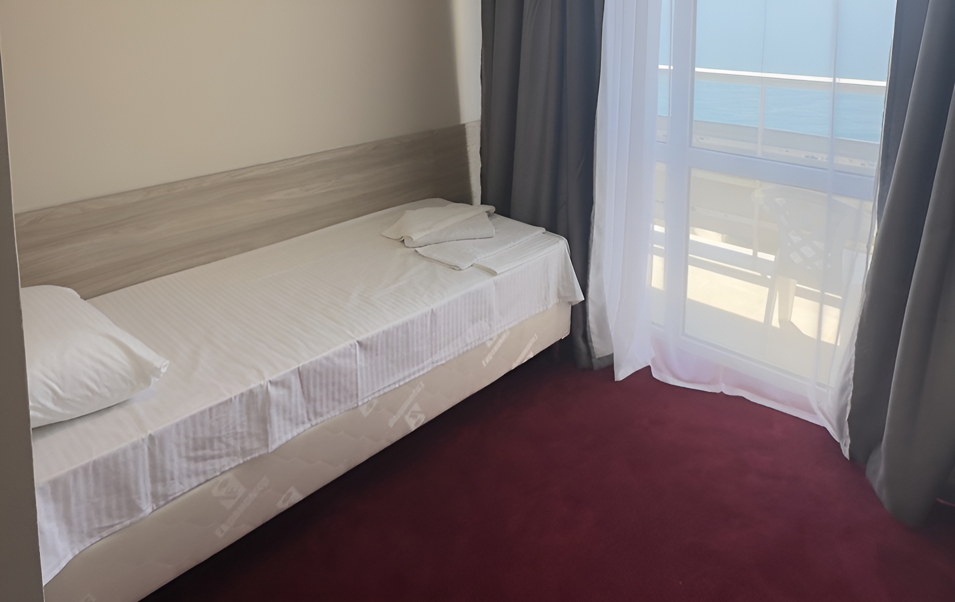 Ездили в сентябре 2025. Ощущение как будто ты находишься в дом старости. (Нам самим почти 40 лет, но там реально одни бабушки, которые устраивали огромную очередь до открытия столовой и бои в столовой. Ладно б было б вкусно, но еда очень бюджетная и невкусная). Были в корпусе Маяк, старый без ремонта, кран громко протекал , но у нас и не было особых ожиданий. Нас заранее предупреждали, что номер от 67 года. Не берите экскурсии в столовой. Это просто кошмар, такого наглово выкачивания денег мы не видели не в одной стране, хотя очень много путешествуем. А именно мы взяли пещеру прогулку в новый Афон. В итоге нас повезли в поселок Лыхны за доп плату, хотя все были против. Люди даже не вышли из автобуса и не отдали доп деньги за это, но время потеряли.... Потом повезли в дорогую столовую, зашли мы посмотрели цены и пошли в соседнюю где в 3 раза дешевле. Продавцы на территории пансионата и за его пределами отдельная история... Врут и обсчитывают в наглую. Но природа и море нам понравилось. Вид из номера шикарный. Несоответсвие цены и качества услуг.