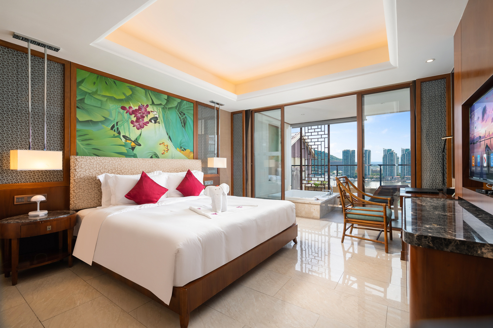 В комплектации номера двуспальная кровать king-size/2 односпальные кровати, кондиционер, телевизор, сейф, телефон. В числе прочих удобств беспроводной Интернет и туалетно-косметические принадлежности. Ванная комната с душем. Имеется балкон с ванной, видом на гавань и море.