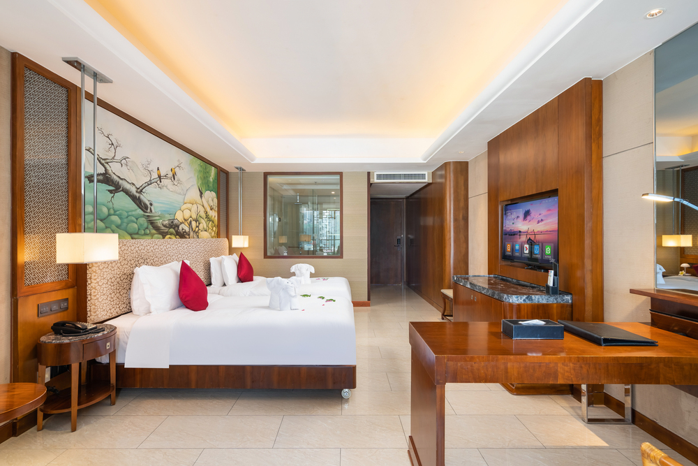 Однокомнатный номер с ванной комнатой с душем, спальней с двуспальной кроватью king-size/двумя односпальными кроватями, балконом с ванной. В числе удобств телевизор, кондиционер, телефон, сейф, фен, халаты, тапочки.