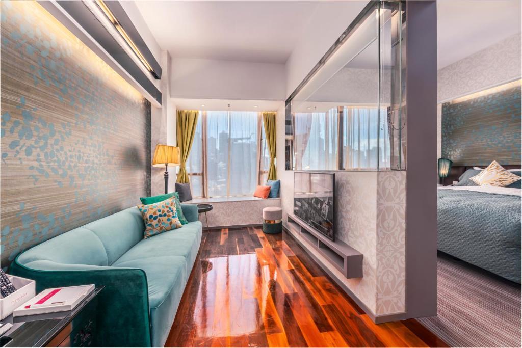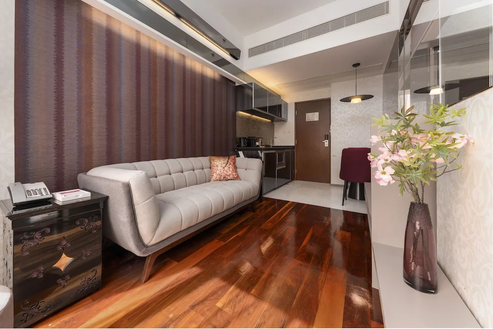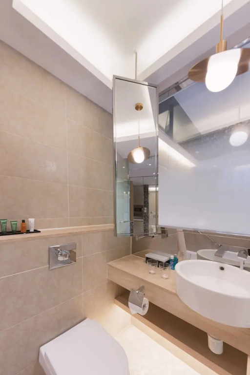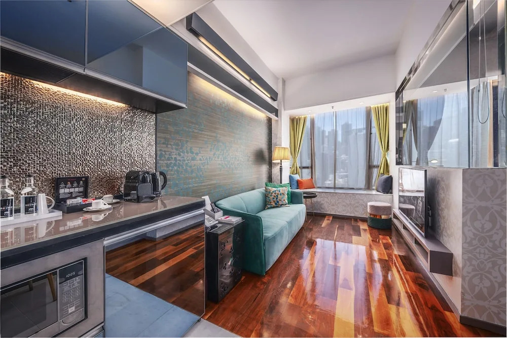 Это очень маленький по площади отель, поэтому, хотя в нем более 20 этажей, на каждом этаже есть только два номера. Это не является чем-то необычным для Гонконга, где пространство стоит так дорого. Но отель имеет отличное соотношение цены и качества благодаря своему превосходному расположению: всего в 10 минутах ходьбы от центра центрального района Гонконга и в 5 минутах ходьбы от станций метро. Комнаты оказались на удивление не такими маленькими, как я ожидал, и у меня был люкс с отдельной гостиной. Ванная комната просторная, с полноценной ванной и душевой кабиной за стеклянными дверями. В номере также была мини-кухня с микроволновой печью, холодильником среднего размера, кухонной раковиной, кофемашиной Nespresso, чайными пакетиками, чайником, тарелками и т. д. В отеле также есть тренажерный зал, но нет ресторана. Но в том же квартале находятся десятки ресторанов, так что это не проблема. Одно предостережение: в вестибюль ведет только короткий лестничный пролет, поэтому будьте готовы нести свой багаж. У них есть небольшой гидравлический лифт, но он предназначен только для инвалидных колясок.