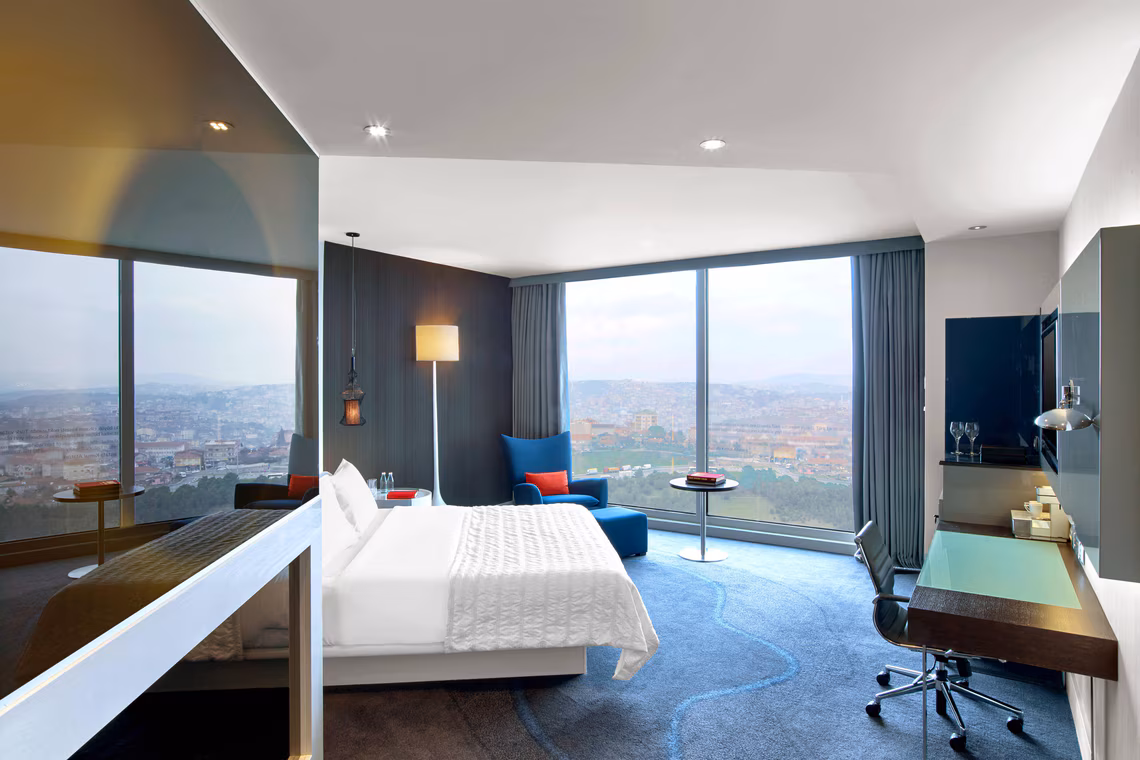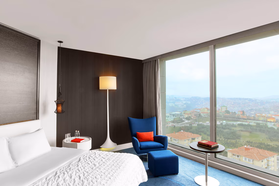 Отель расположен на высокой скале в районе Этилер, который очень оживленный, но вы не можете идти вокруг, потому что главная улица и все рестораны/магазины могут быть только на такси. Мы остановились в номере представительского клуба на 26 этаже с удивительным видом на мост через Босфор и Галату. Номера просторны с кофемашинами Alli, чайником, большим балконом, великолепной ванной комнатой и всем необходимым. Очень чистый и удобный в целом. Представительский салон чрезвычайно скромный, они предлагают бесплатные алкогольные и безалкогольные напитки, а также некоторые скромные закуски, ничего модного. Персонал в представительском салоне очень приятный, особенно Джамиля. Вторая леди была болтливой и очень навязчивой. Наверное, они скучают, потому что комната отдыха пустует большую часть времени. Завтрак на 4 этаже очень хорош с сытным разнообразием. У них есть целый раздел для имита и турецкой выпечки (вкусно) . Открытая площадка ресторана тоже хорошая, но кошки не оставят вас в покое. Я принял восторг у парикмахера и пошел вовремя, чтобы обнаружить, что они все еще закрыты. это было разочарование, но к счастью был хороший в ближайшем торговом центре (Ак Меркез) - почти 5 минут езды на такси. Конечно, самая большая головная боль, если вы останавливаетесь в этом отеле - транспорт, так как таксисты не всегда честны, и в итоге мы потратили тонны на повседневные поручения в Таксим, Османбей и старый город. В целом, я не думаю, что остановился бы там снова, если только отель не предоставляет волшебную услугу, которая решит транспортный вопрос, т.е.: бесплатный трансфер до ключевых туристических мест, таких как Cevahir Mall, Истикляль улица, старый город или даже до ближайшего ресторана в Этилер, где есть множество ресторанов, таких как P.F. Chang's, Nusret и т.д. Ознакомьтесь с моими фотографиями и подробным обзором в инстаграме/Хендельтавиле
