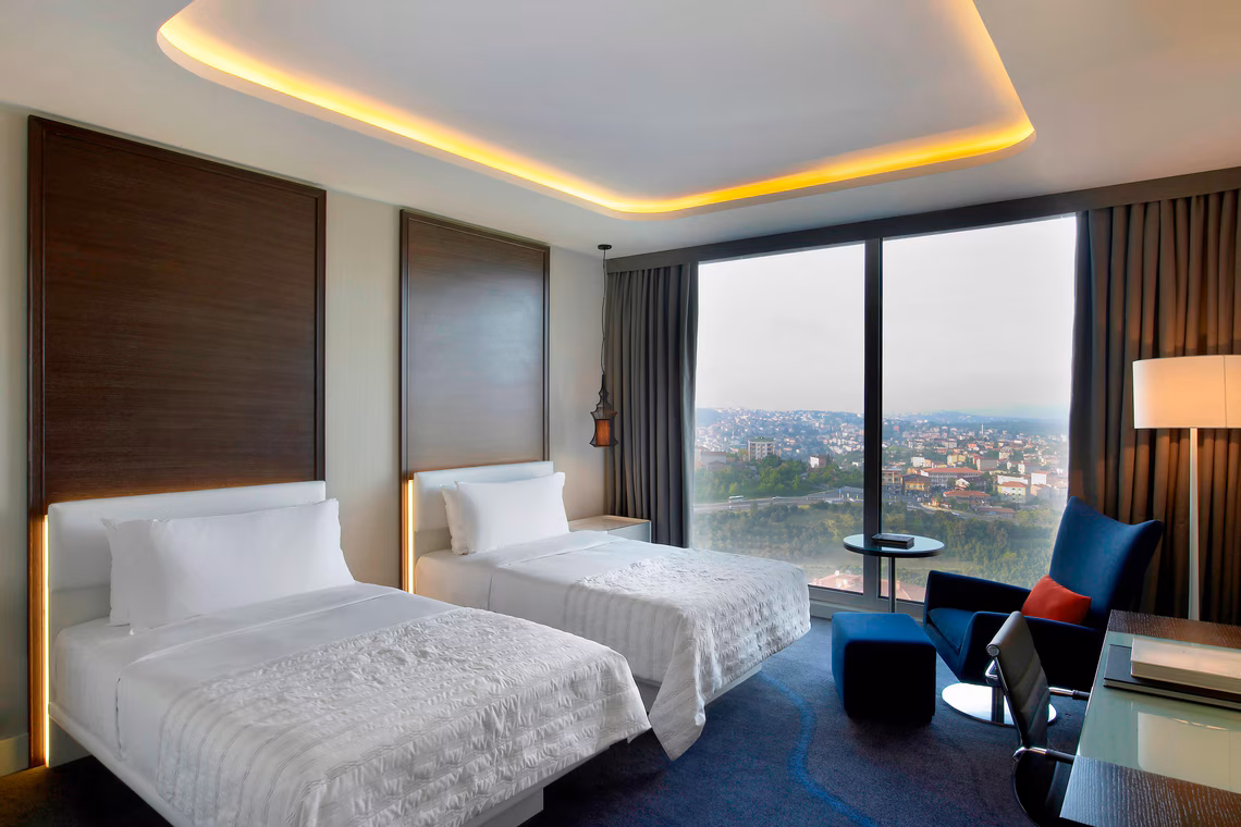 Le Meridien имеет вид и ощущение пятизвездочного отеля. Номера очень просторные, ванные превосходные, и если вы можете получить номер на верхних этажах с балконом, вид потрясающий. Имеет два бассейна, крытый и открытый, хотя открытый бассейн очень холодный. Завтрак превосходный с огромным количеством разнообразия. Он на любой вкус. Обслуживание в ресторане вечером дьявольское. Мы ждали, когда нам подадут еду более полутора часов, а другие жаловались на то, что это занимает два часа. Один из вопросов, который у меня возникает в отеле, - это сложность попасть в центр Стамбула. Существует трансфер, который курсирует три раза в день, чтобы доставить вас в местный торговый центр, а также на станцию метро в Лаванте. От него - 16 минут пути в центр города. Возвращение немного сложнее в том смысле, что отель не запускает трансфер обратно в отель, так что вы очень зависимы от получения местного такси. Я бы не рекомендовал доставлять такси из центра Стамбула в отель, потому что пробки в городе в пригороды - это абсолютный кошмар. Неудивительно, что он рассматривается как один самых перегруженных городов мира.
