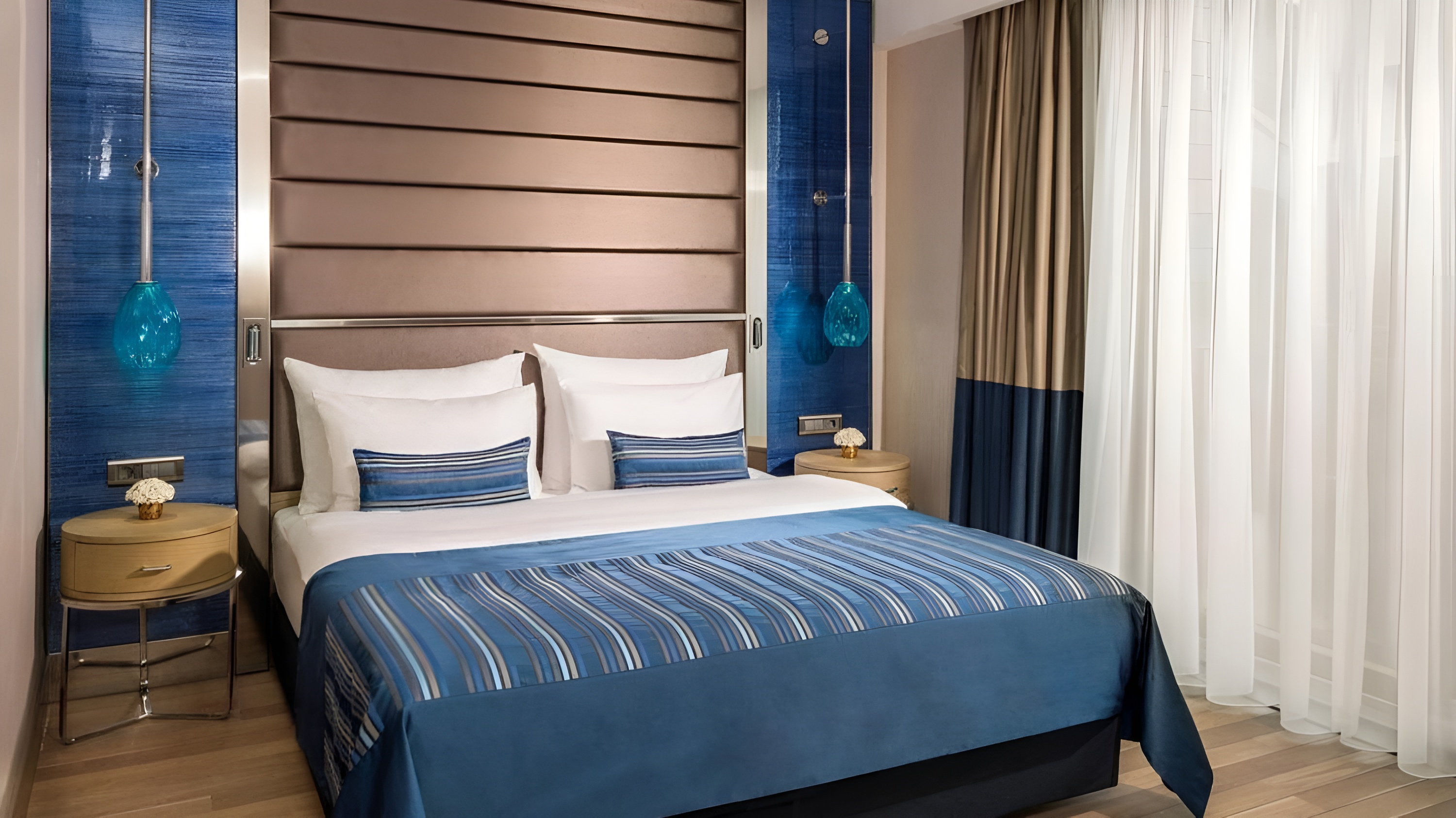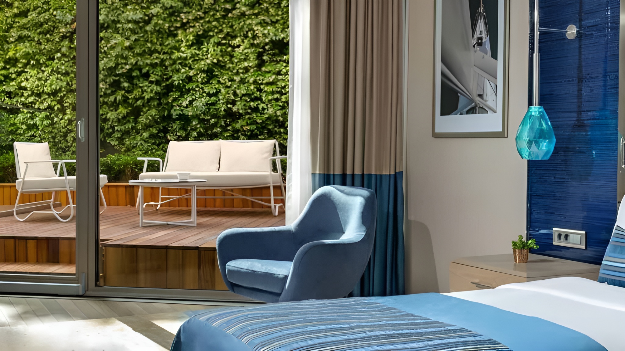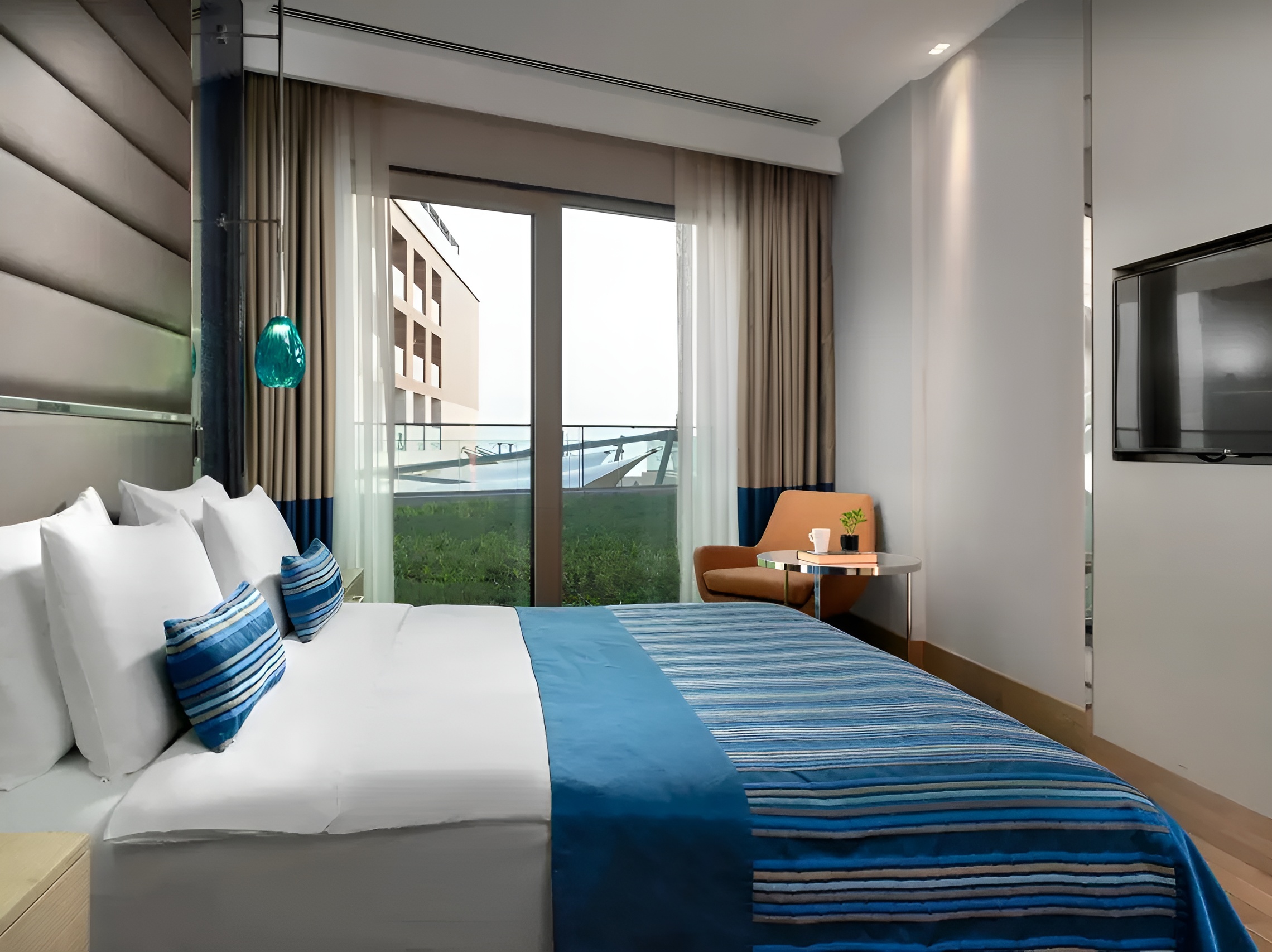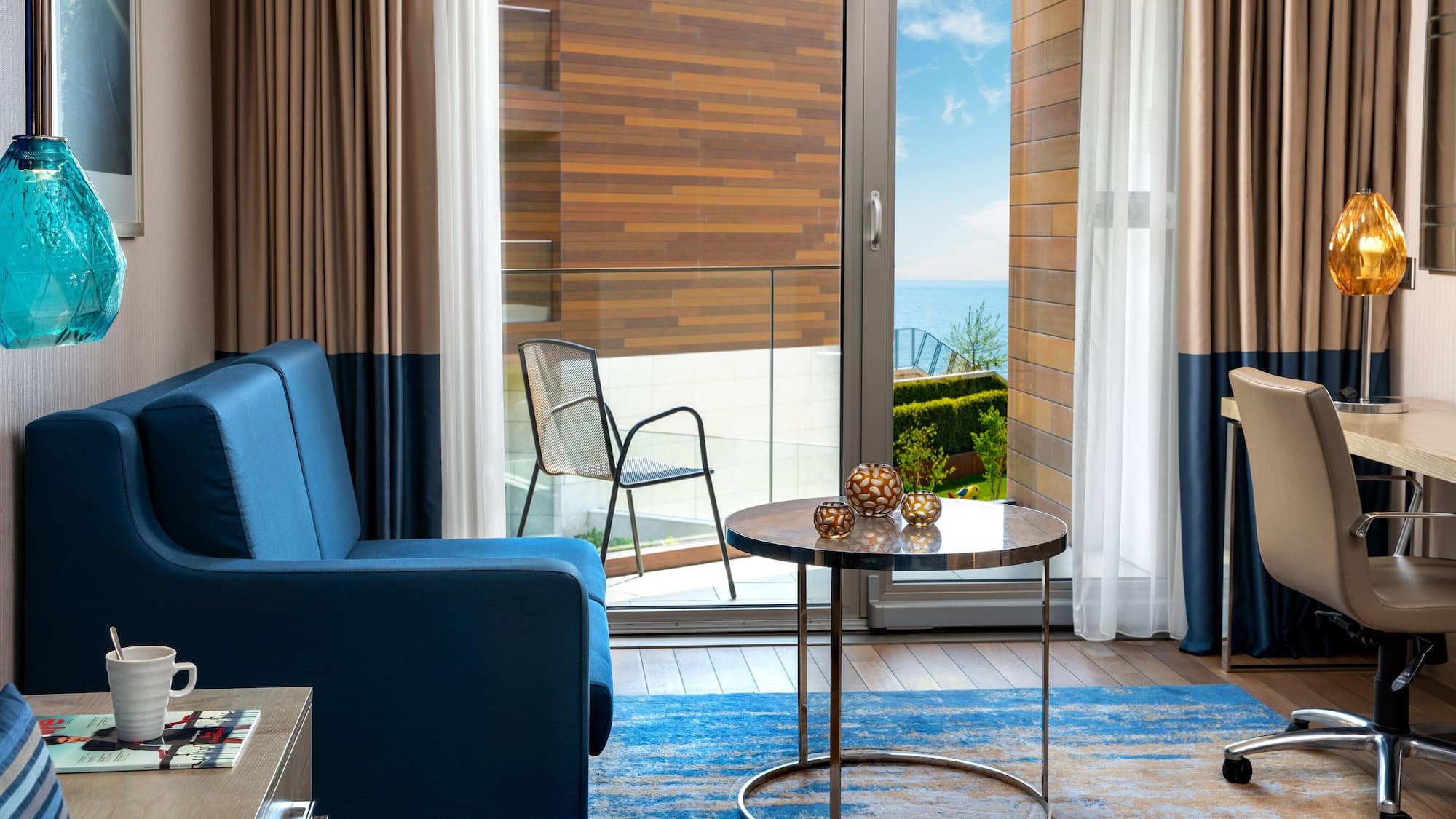 Комфортабельный номер с балконом, видом на море и собственной ванной комнатой с ванной/душем. Из удобств телевизор, кондиционер, сейф, чайные и гладильные принадлежности, Wi-Fi, фен. Гости размещаются на двух раздельных кроватях или одной двуспальной кровати и диване.